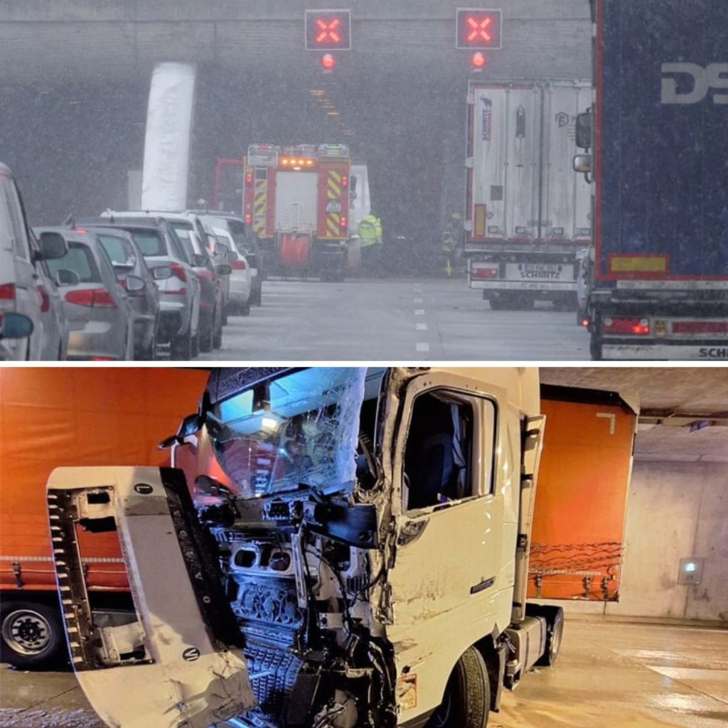 Silvester-Schnee sorgt für Chaos auf A4 und A17: Lkw kracht gegen Tunnelwand