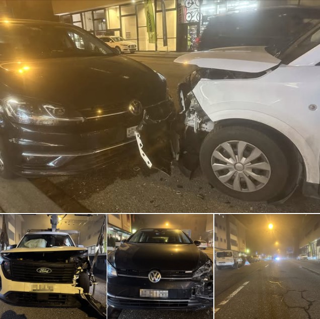 Durch die Wucht des Aufpralls wurde dieses gegen ein weiteres Fahrzeug geschoben, welches wiederum gegen ein weiteres parkiertes Fahrzeug stiess.