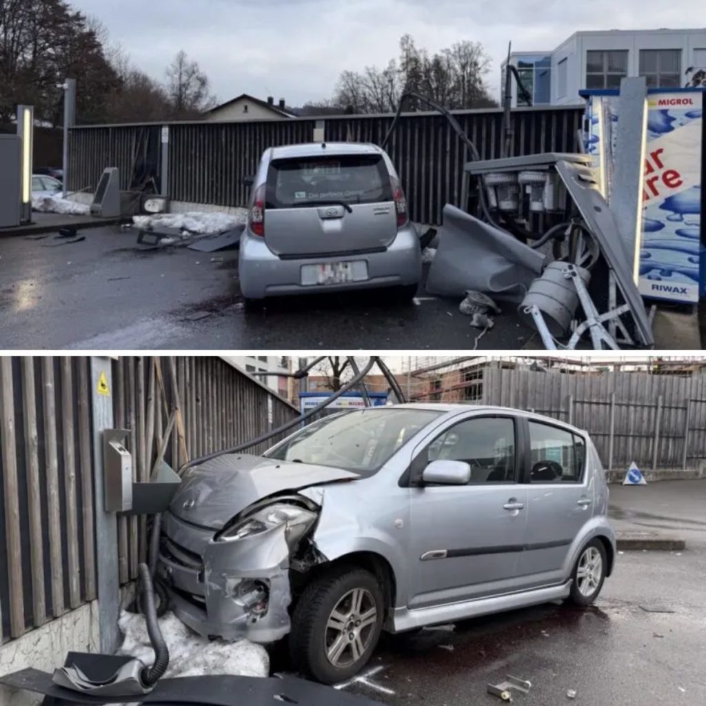 Darauf prallte sie mit dem Fahrzeug gegen einen Werbeständer, überfuhr eine Betonmauer und kollidierte anschliessend mit einer Saugstation.