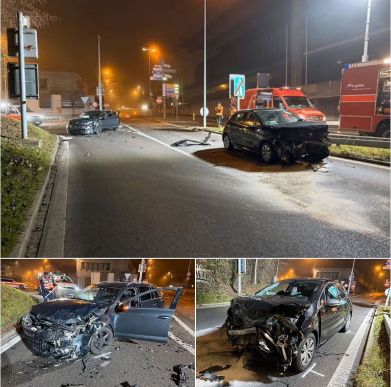 Am Montag, 22. Dezember 2025, kam es in St.Gallen zu einem Unfall zweier Autos. Eine 38-jährige Autofahrerin wurde leicht verletzt ins Spital gebracht. Sie war wegen eines herannahenden Rettungswagen in Panik geraten.