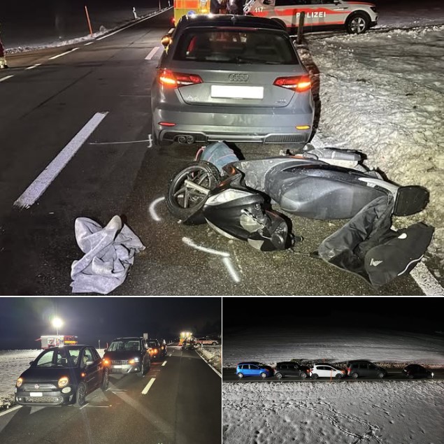 Nur wenige Minuten später ereignete sich auf der Gegenrichtung eine weitere Auffahrkollision, bei dem fünf Personenwagen involviert waren. Aufgrund des Unfalles auf der Gegenfahrbahn verlangsamte eine 40-jährige Automobilistin ihre Fahrt bis zum Stillstand und wollte Hilfe leisten.