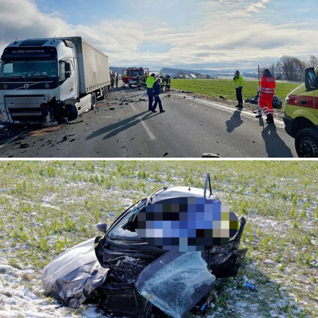 Tödlicher Unfall im Erzgebirge: Škoda stößt frontal mit Laster zusammen