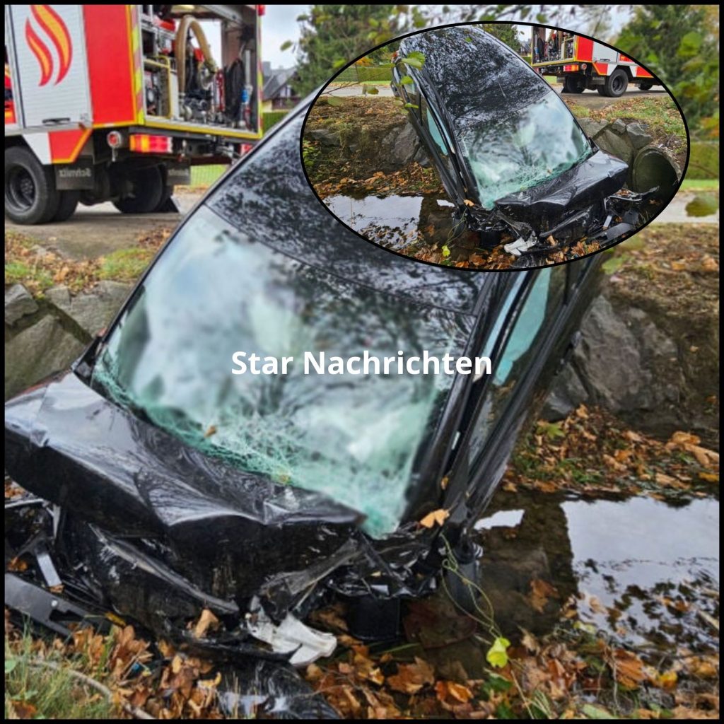 Gegen 11 Uhr kam die Toyota-Fahrerin auf der Straße Zum Goldenen Stern aus bisher unbekannter Ursache von der Straße ab und rutschte in einen kleinen Bach.