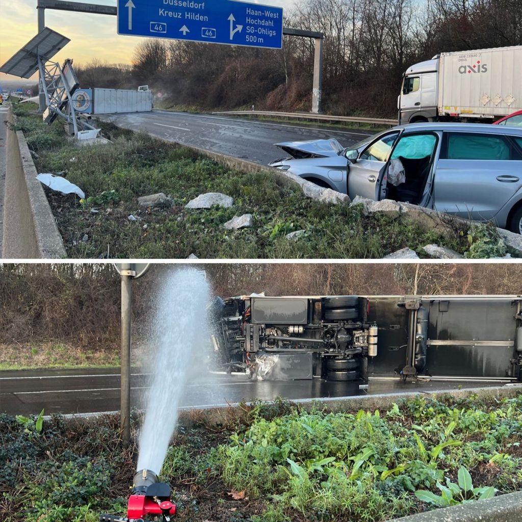 A46 Haan – Transport mit Gefahrgut umgestürzt und in Brand geraten