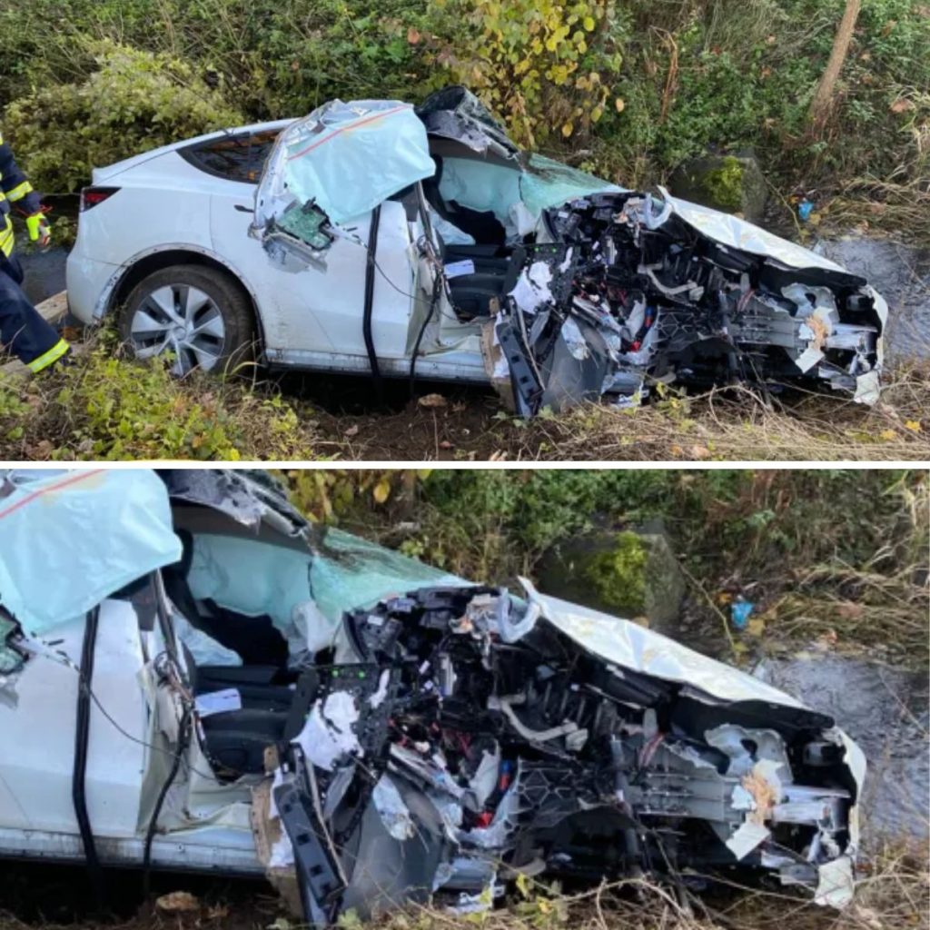 Das Fahrzeug kam daraufhin nach rechts von der Fahrbahn ab, fuhr noch rund 100 Meter weiter, bevor es gegen einen Baum prallte, sich überschlug und schließlich neben einem Bachlauf zum Liegen kam.
