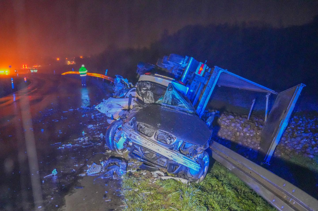 Ein BMW-Fahrer ist in der Nacht zu Samstag bei Regen auf der Landesstraße zwischen Kirchardt und Berwangen verunglückt. Laut Polizei kam der Mann gegen 00.15 Uhr in einer Kurve mit dem Auto ins Schlingern und prallte in einen entgegenkommenden Laster, der auf dem Rückweg von der Zuckerrüben-Ernte war.
