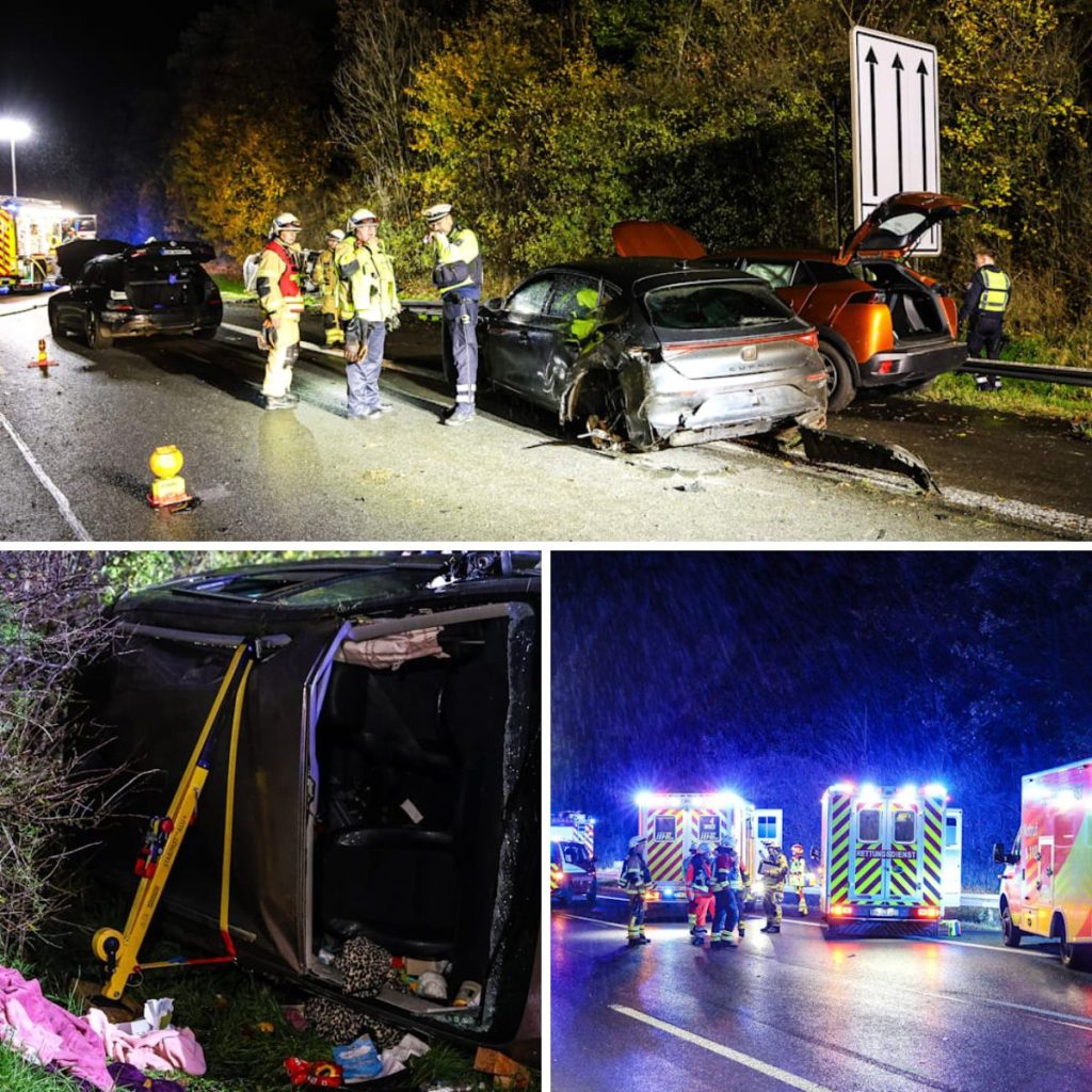 Zum Glück konnten sich die Unfallbeteiligten alle selbst aus den Wracks befreien. Feuerwehr und Notärzte kümmerten sich um sie. Insgesamt wurden laut Polizei sieben Personen verletzt, ob darunter auch Kinder waren, konnte die Polizei in der Nacht noch nicht sagen.
