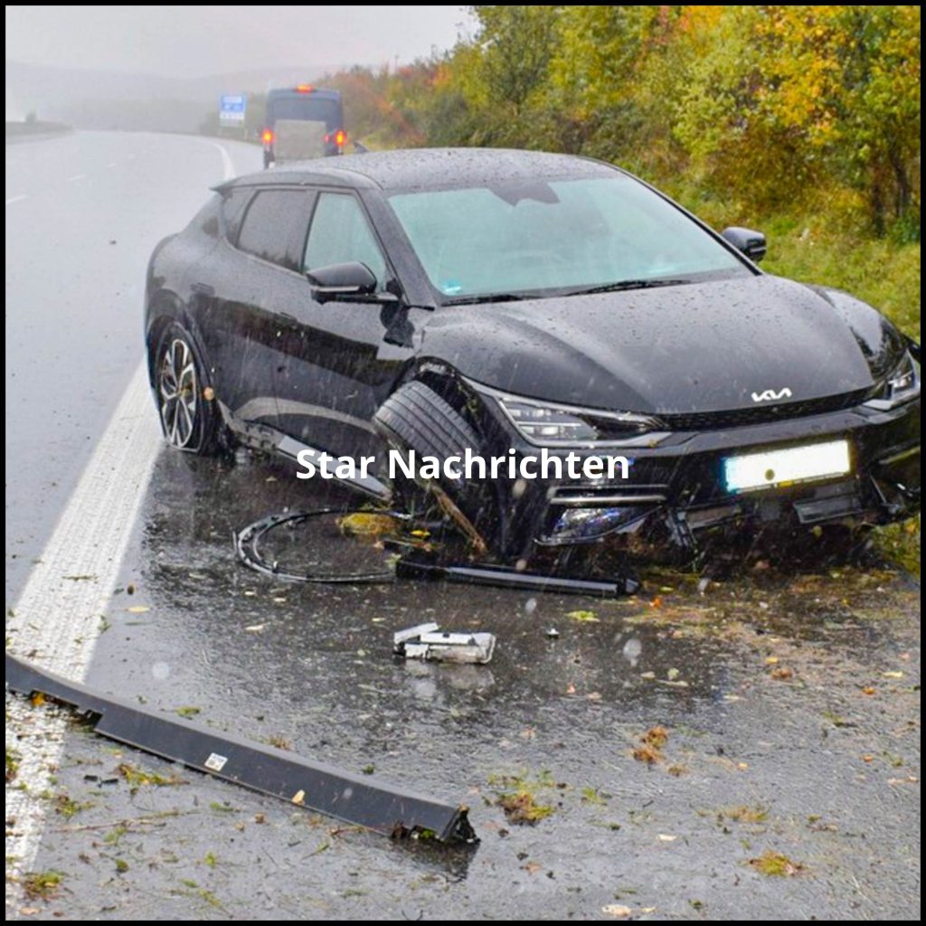 Der Mann war gemeinsam mit seiner 41-jährigen Beifahrerin und zwei Kindern im Alter von sechs und elf Jahren in einem KIA EV6 unterwegs, als unwetterartige Regenfälle und starker Sturm einsetzten. Infolge der Witterungsbedingungen geriet das Fahrzeug ins Schleudern, verfehlte nur knapp ein anderes Auto, kam von der Fahrbahn ab und prallte gegen einen Erdwall.