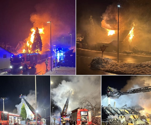 Die beiden Bewohner konnten das Haus rechtzeitig verlassen und blieben unverletzt. Die Brandbekämpfung gestalteten sich schwierig, weshalb das Feuer erst in den frühen Morgenstunden vollständig gelöscht werden konnte.