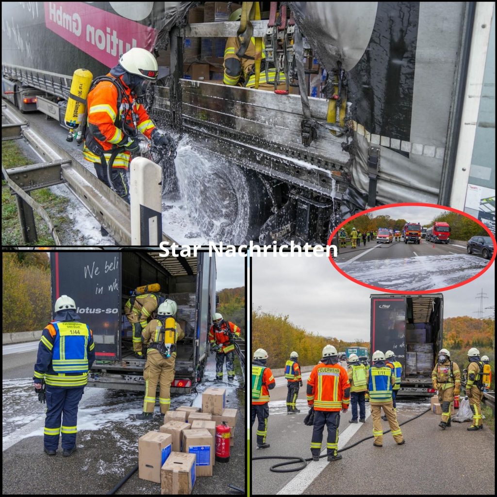 Laut Feuerwehr-Einsatzleiter Michael Hess war der rechte Hinterreifen eines Lkw-Sattelaufliegers während der Fahrt in Richtung Bad Rappenau gegen 9.30 Uhr in Brand geraten. An einer Steigungsstrecke kurz nach der Auffahrt Steinsfurt steuerte die Fahrerin den Laster auf den Standstreifen.